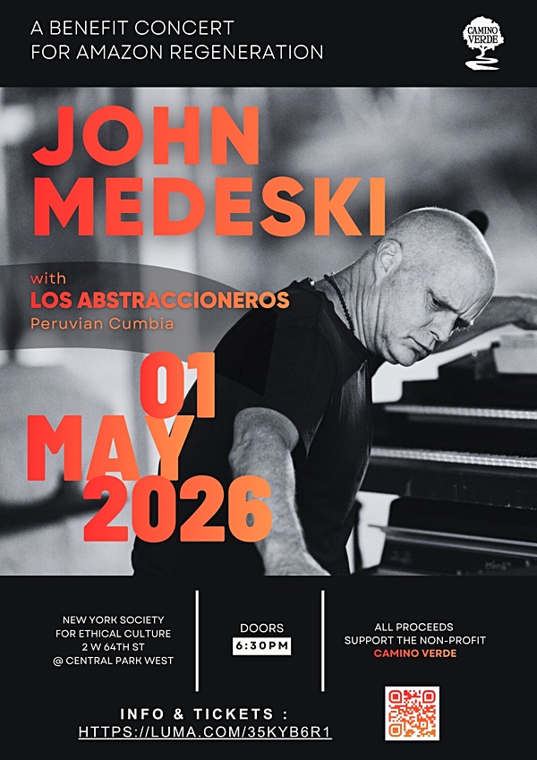 An extraordinary evening of music and purpose will bring together acclaimed keyboardist John Medeski and Peruvian Amazonian cumbia trio Los Abstraccioneros for a one-of-a-kind benefit concert supporting rainforest restoration efforts in the Peruvian Amazon.The event will take place at New York Society for Ethical Culture’s Adler Hall (2 W 64th St, New York, NY), an intimate and distinctive performance space on Central Park West. This unique setting offers audiences a rare opportunity to experience these artists up close.